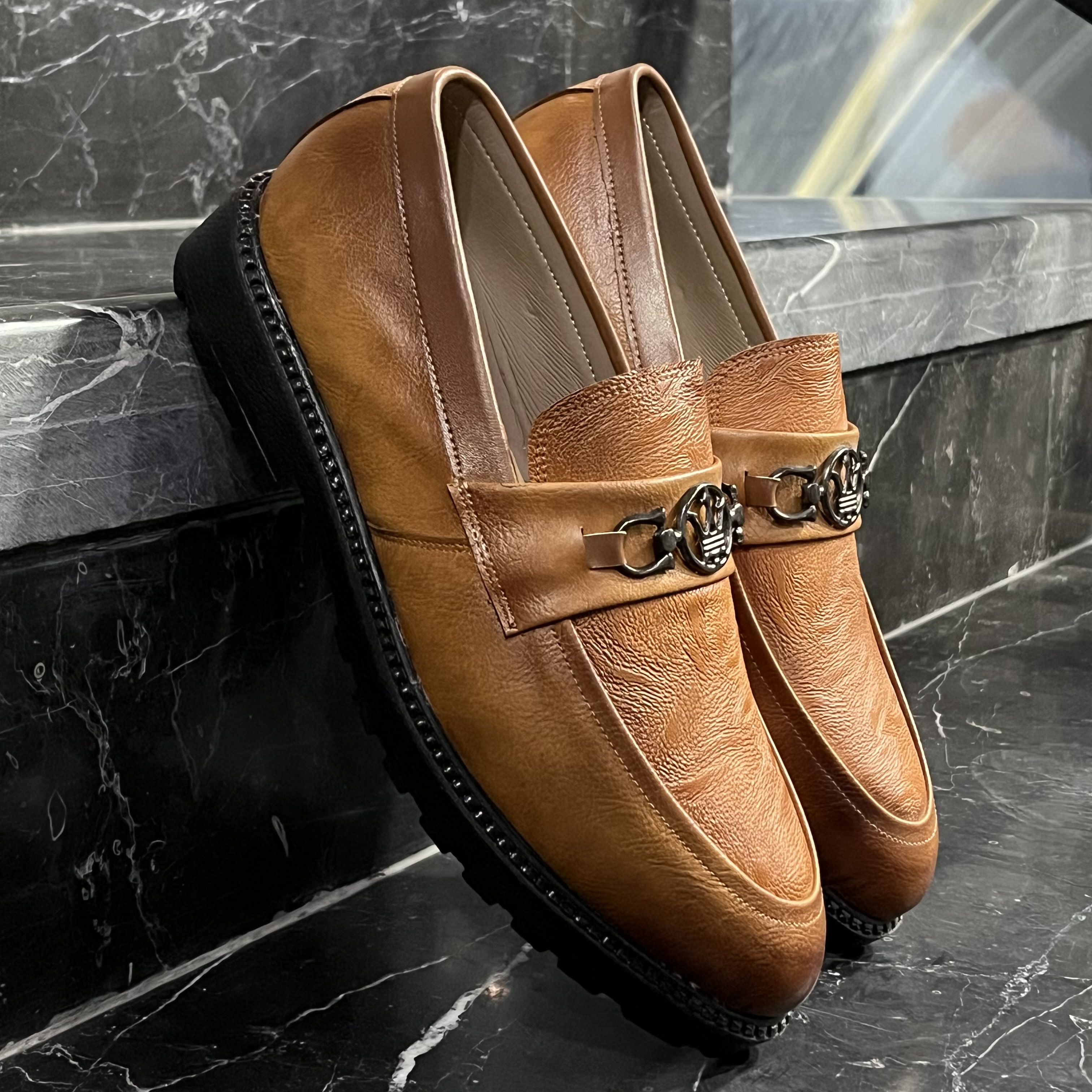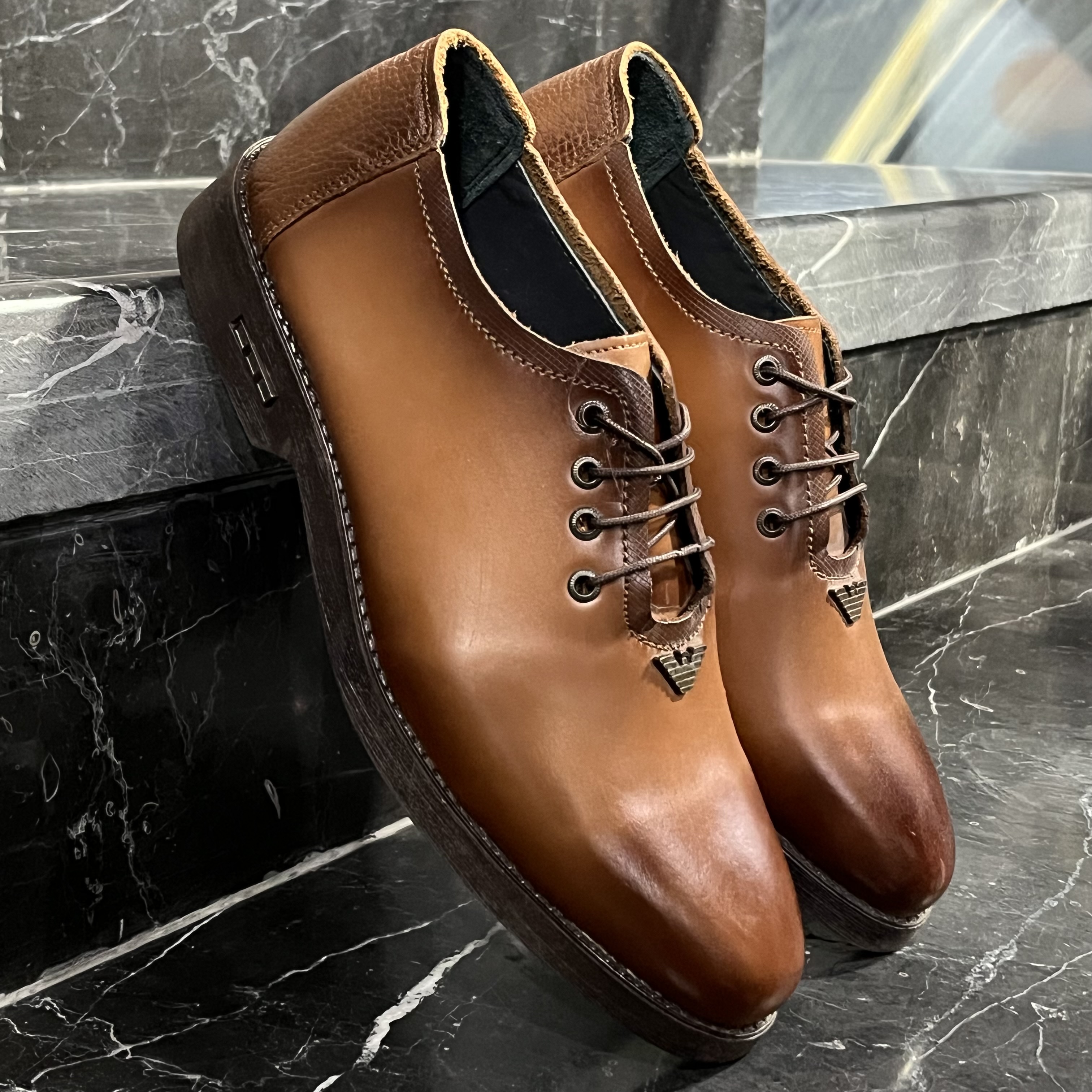 کفش چرم مردانه عسلی(چرم تبریز)
