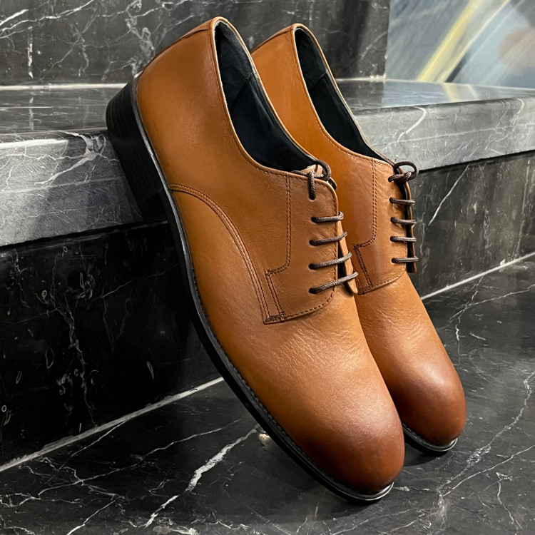 کفش مردانه چرم عسلی بندی