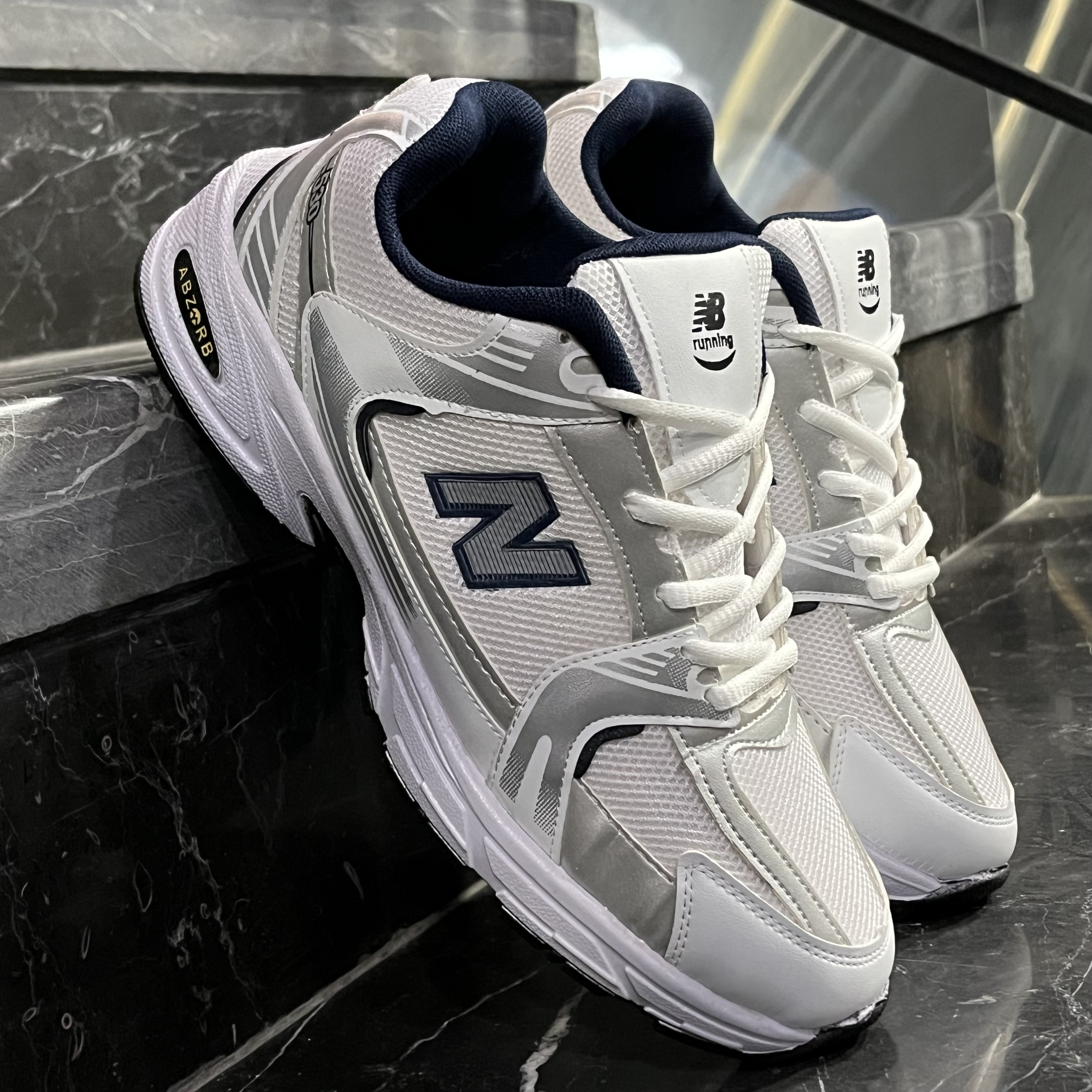 نیوبالانس530سفید نقره ای ست زن مرد